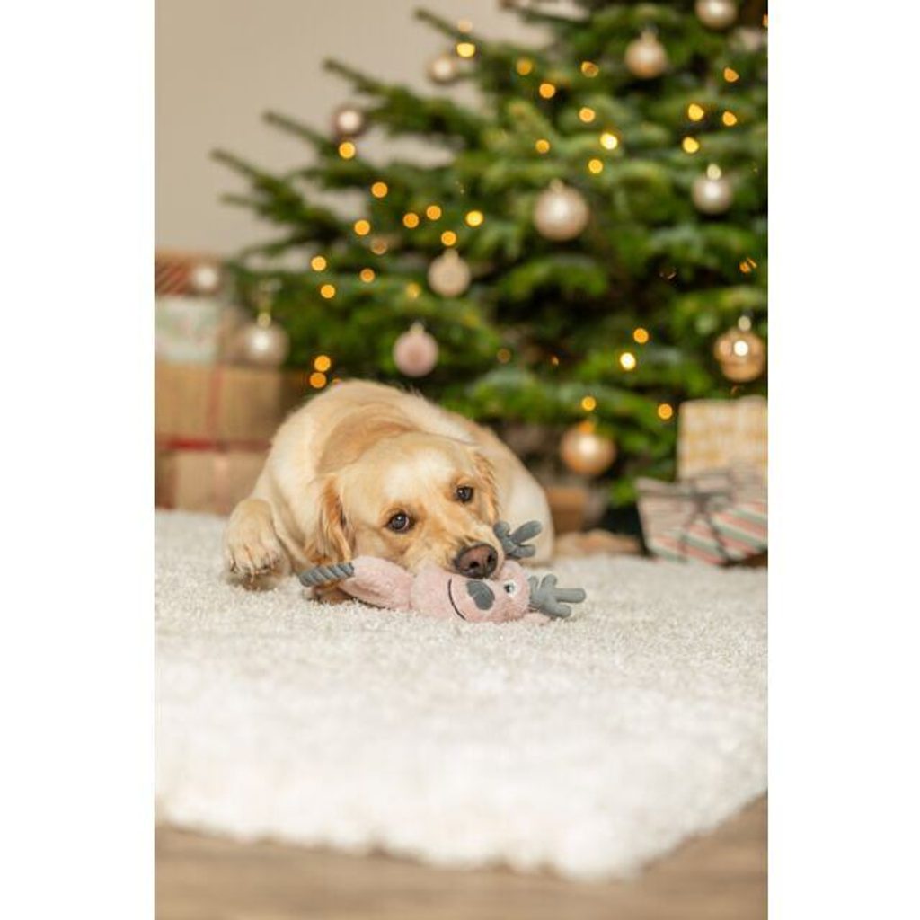 Vánoční sob na laně, šustící, 47 cm, plyš/bavlněné lano, růžová/šedá