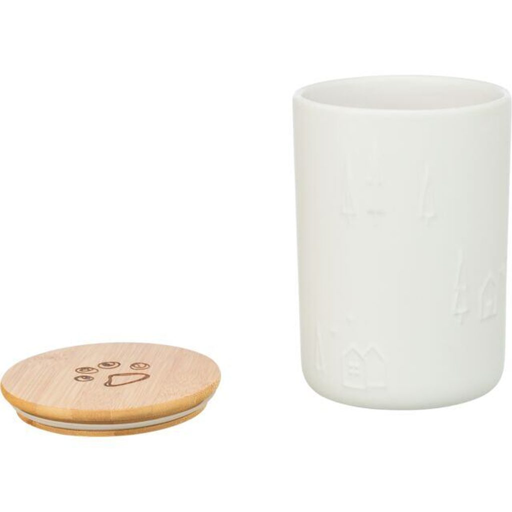 Vánoční zásobník na pamlsky, ø 13 × 19 cm, keramika/dřevo, bílá