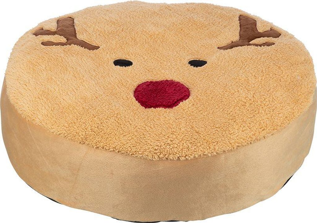 Xmas Cushion Moose - vánoční kulatý polštář sob, 60 cm, fleece/plyš, světlehnědá