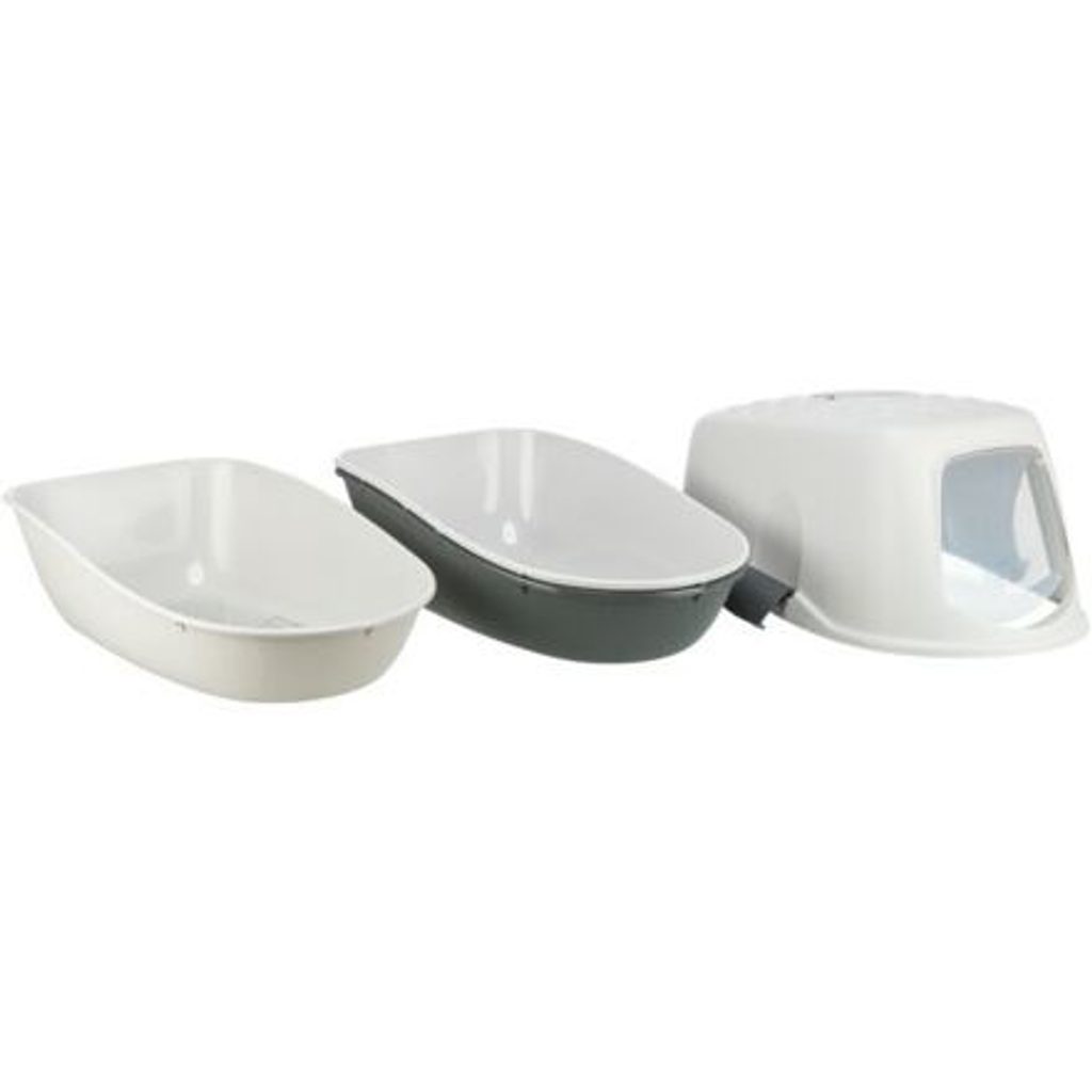 Před prvním použitím sejměte kryt otevřením Easy-Click úchytů a vložte síto mezi plastová dna. Poté naplňte horní zásobník jemným kočičím stelivem a nakonec připevněte k zásobníkům vrchní díl.