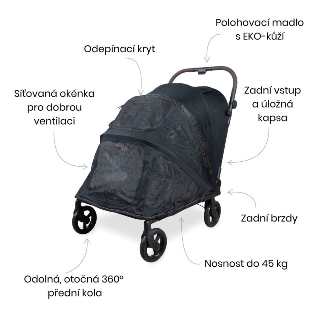 Tento kočárek pro domácí mazlíčky je ideální pro společné procházky. Díky snadnému přístupu zadním vchodem je vhodný pro větší plemena. Váš chlupatý miláček si může užívat výhled z horního či prostředního okna, zatímco krytý díl mu nabízí útulné útočiště, když chce mít soukromí.