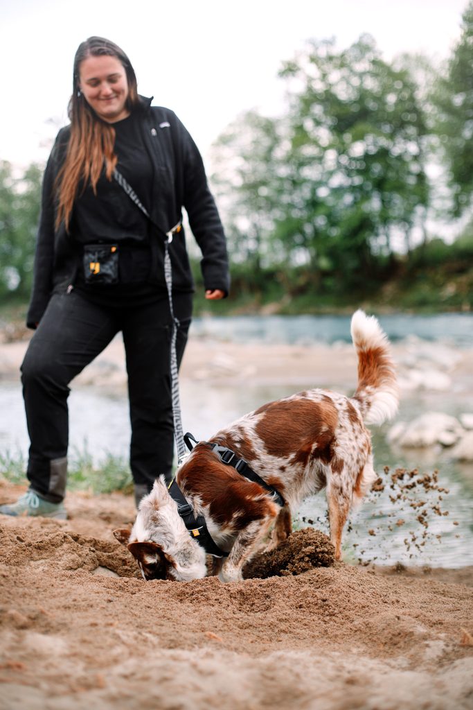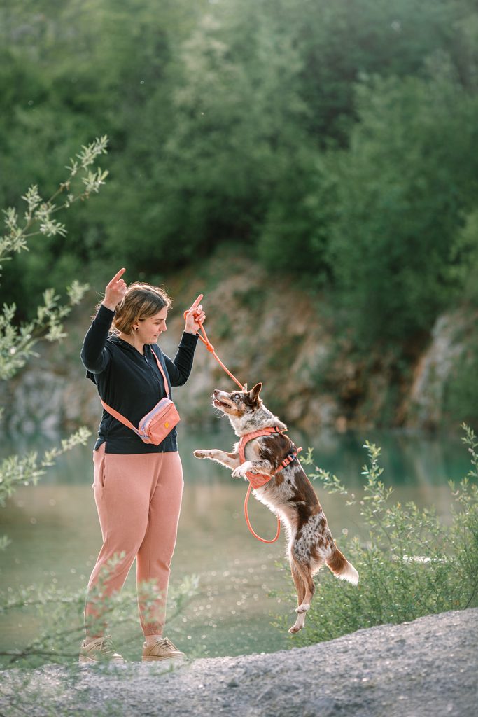 Tento všestranný postroj má dvě možnosti uchycení vodítka: hliníkový V-kroužek vycentrovaný na zádech psa pro každodenní procházky a extra silnou přední sponu, která se používá společně se zadním V-kroužkem a slouží k usměrnění psů, kteří na vodítku tahají. Zadní část je vybavena rukojetí, která zlepšuje kontrolu psa v náročných situacích. Bezpečnost za všech okolností je nejvyšší prioritou. Reflexní prvky 3M umístěné na přední i zadní části zvyšují viditelnost ve tmě. Zadní díl navíc obsahuje také dvojité poutko s další 3M odrazkou, určené pro připevnění LED světla nebo jmenovky.