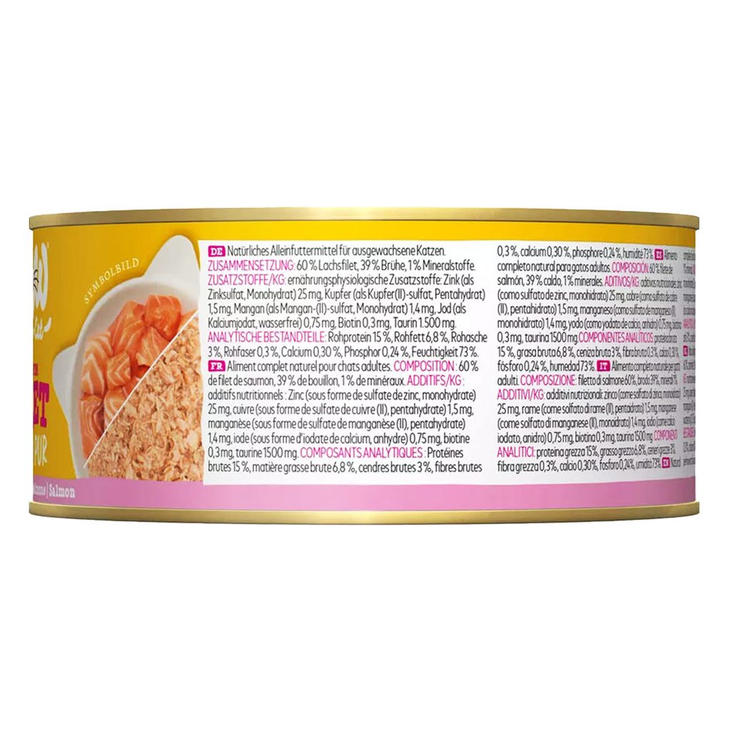 Čerstvé filety z lososa šetrně uvařené ve vlastní šťávě. 100% losos pro nejnáročnější kočičí milovníky jedinečné chuti lososa. Kompletní krmivo pro dospělé kočky. Čerstvé filety z lososa šetrně uvařené ve vlastní šťávě. 100% losos pro nejnáročnější kočičí milovníky jedinečné chuti lososa. Kompletní krmivo pro dospělé kočky.