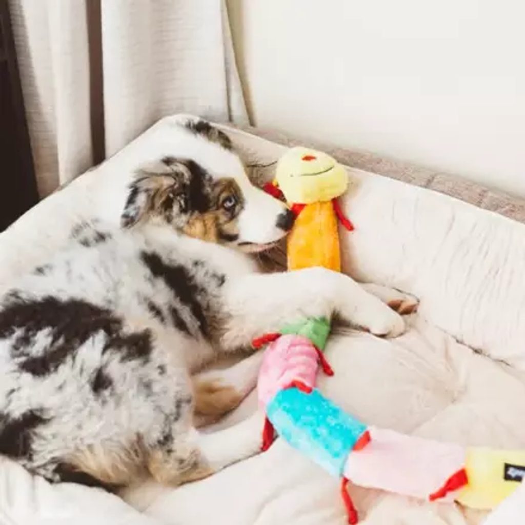 Barevná plyšová housenka bez výplně, se sedmi kulatými pískátky. Nepřehlédnutelná hlasitá hračka pro psy. Velikost 50 cm. Pestrobarevná housenka od ZippyPaws je navržena tak, aby byla snadno uchopitelná psím čelistmi. Její dlouhý tenký tvar umožňuje psům snadné držení a manipulaci s hračkou i za běhu.