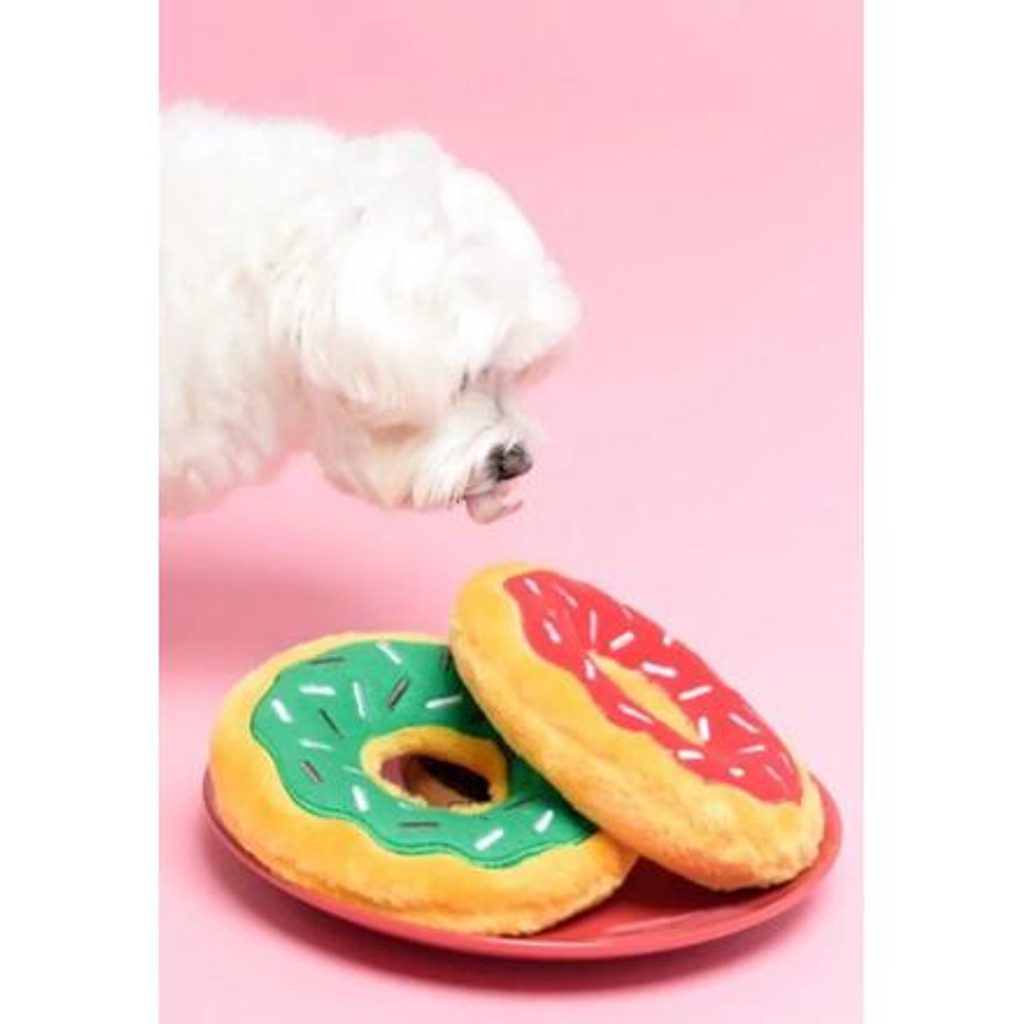 Plyšová hračka ve tvaru americké koblihy. Velikost 18 cm. Tato hračka přímo vybízí k nakousnutí. Veselý design a tvar kruhu, který krásně padne do tlamy, z ní dělají jednu z nejoblíbenějších plyšových hraček od ZippyPaws.